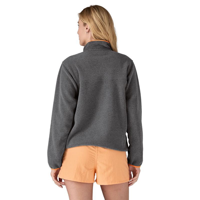 Polar Para Mujer Synchilla Snap-T Gris Patagonia. El polar Synchilla® Snap-T de mujer es una versión más ligera del clásico Snap-T de Patagonia®. Hecho con polar de doble clara de poliéster 95-1% reciclado con acabado anti-pilling, haciendolo una prenda versátil, ecológica y cómoda. Es polar suave, absorbe la humedad y se seca rápidamente. Tiene cuello alto y una solapa con cuatro botones a presión. Cuenta con un bolsillo con solapa y botón a presión para guardar los esenciales. Los puños y dobladillos son elásticos protegiendote del frío y el viento. Fair Trade™: Hecha en fábrica certificada. Promueve la salud y seguridad laboral, el cumplimiento de estándares sociales y ambientales, y fomenta el diálogo entre los trabajadores y la administración.