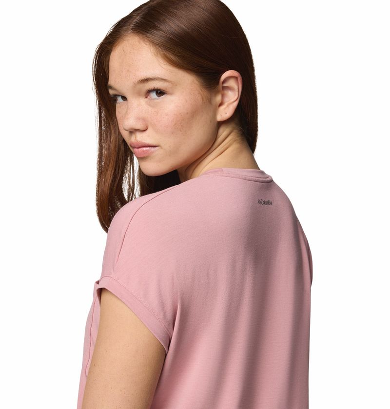 Polo Para Mujer Manga Corta Boundless Trek™ Rosado Columbia.Afronta todo lo que te traiga el día con esta camiseta suave, elástica y que absorbe el sudor, confeccionada con material reciclado.